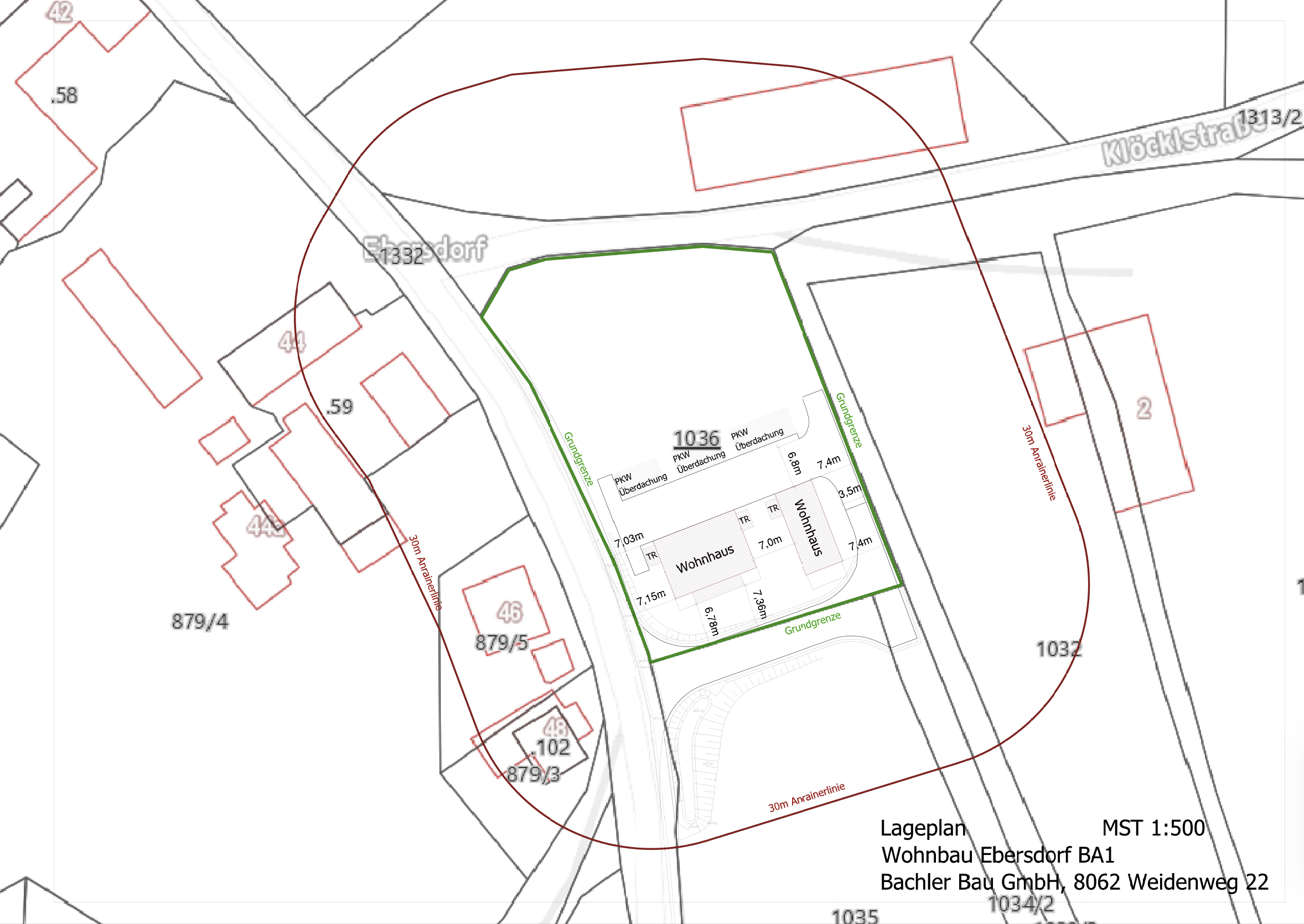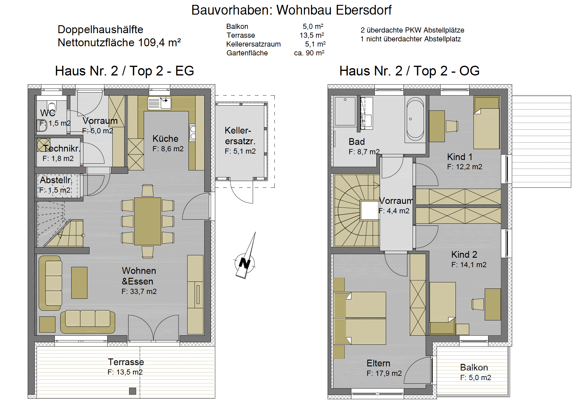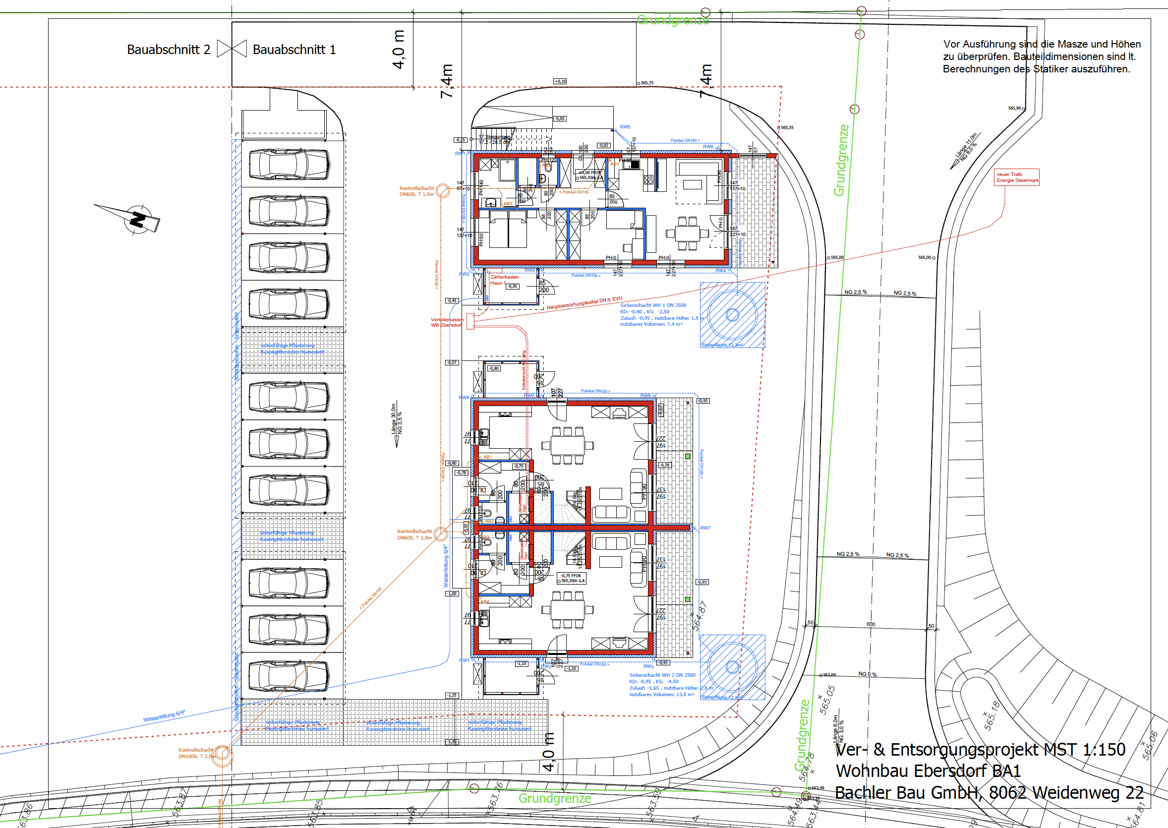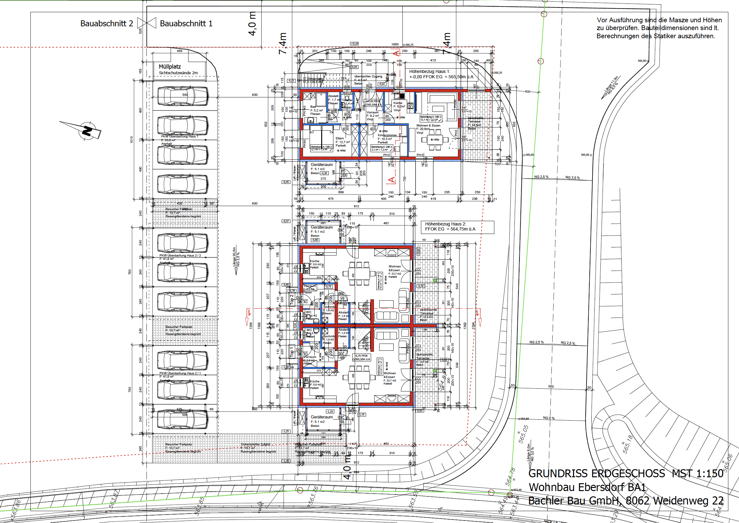 Neubauwohnanlage Ebersdorf Grundrisse Haus 1 Grundrisse Haus 2 Grundriss der gesamten Wohnanlage [Ansicht EG] Grundriss der gesamten Wohnanlage [Ansicht OG] Ver- und Entsorgung Lageplan Gebäudeschnitte